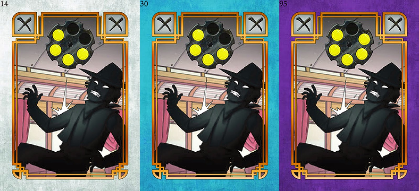 每個玩家有六張子彈卡,代表自己的六發子彈,如果遊戲結束時發出去給其他玩家的子彈卡最多張,還有機會獲得神槍手的稱號喔!