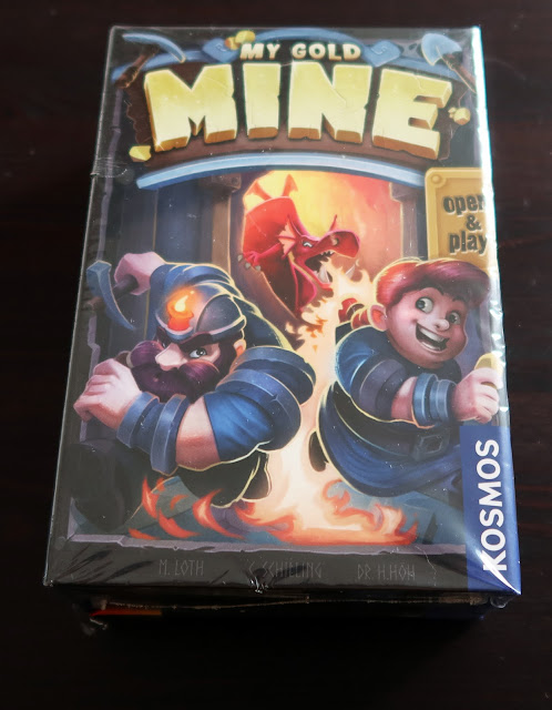 上面這張圖是該系列的第二款《怪獸12》(Monster 12),不過因為這款美術對我來說實在難以下嚥,沒有一併購入。從這系列推出以及遊戲內容來說,我們可以假設 KOSMOS 的假想敵或者說市場取向,其實就是想跟 Oink Games 的小盒作品對尬。自從 Oink Games 開始推出受到歡迎的小盒系列後,市場上就有很多出版社也開始推自己的小盒系列,通常「風險評估」(Press your luck) 類型的機制多是這類小遊戲愛用的。《我的金礦》就是一款「風險評估」類型的遊戲,尤其如果你喜歡《海底探險》(Deep Sea Adventure)、《守寶巨獸》(Troll,原型:《龍牙勇者》(Dragon Teeth Washer)) 等這類「賭一把」的歡樂小品,《我的金礦》值得一試。
