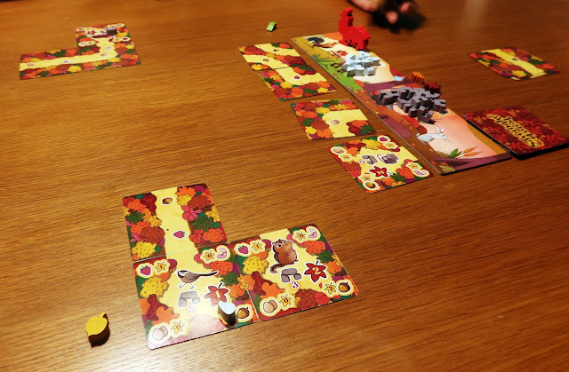 《秋意森林》無論是在配件、視覺的呈現,以及機制與背景的套用上都算上乘,對我來說是一個接近滿分的小品遊戲。雖然說遊戲機制沒有創新的地方,但是在拚放的設計上也還算是帶出了一些「新感覺」的體驗,比如計分是看路徑上可以觸及的食物數量以及食物本身的分數,這讓玩家在拚放路徑時要考量的面向多了「可以連到幾個有效的食物」,而不是單純的路徑與圖形的連接而已。