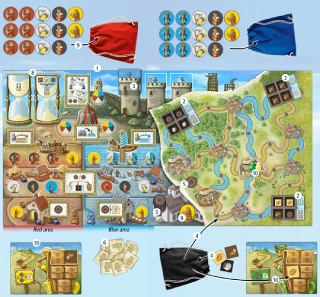 10 每位玩家挑選一種顏色並拿取各自的背包與建築大師。接著,所有玩家按照回合順位,隨機從黑色布袋抽 1 個貨物並把它放到他們背包 5 個空的區域其中一個。每位玩家把他們的建築大師放到 Orléans。任何沒有用到的建築大師以及背包放回遊戲盒中。